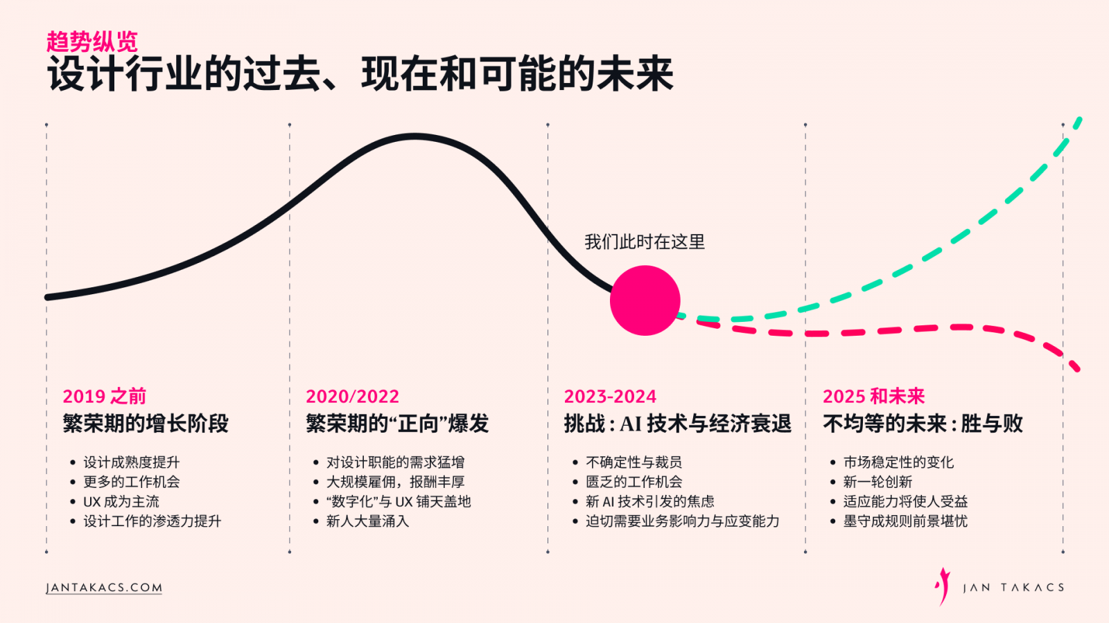 - 行业不同,有兴有衰。某些类型的公司或许会逐渐削减对于设计职能的需求,但另一方面,新的、更加值得探索的行业及前沿阵地同样会在变革中涌现。